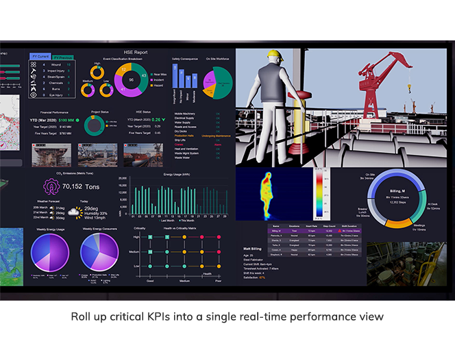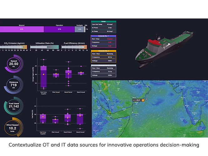 이는 실행 가능한 정보를 맥락화하여 프로세스 및 비프로세스 기능과 선박 건조, 연료 관리, 건강 및 안전, 연결된 작업자와 같이 특정 작업 영역을 관리하는 하위 시스템에 대한 전반적인 관점을 제공합니다.